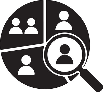 Target audience segmentation with magnifying glass icon for customer profiling and market research analysis diagram. user selection.
