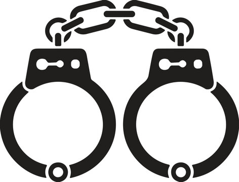 Handcuffs Icon Vector Graphic Silhouette Symbol of Law Enforcement Crime Arrest Justice Imprisonment Police Security Legal System Detention Black and White Illustration