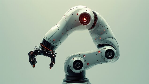Utilize backlighting to silhouette the robotic arm against a clean, white background, allowing space for promotional messaging.