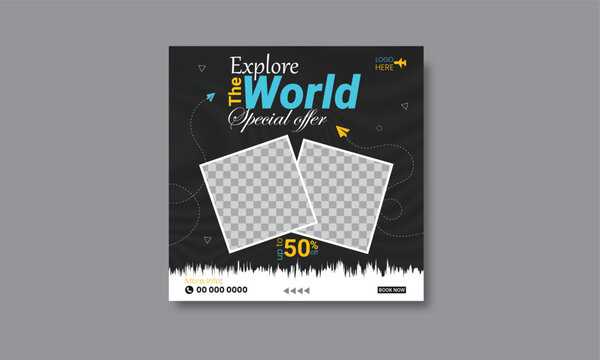 Travel holiday vacation social media post banner or square flyer design template instragram post template.