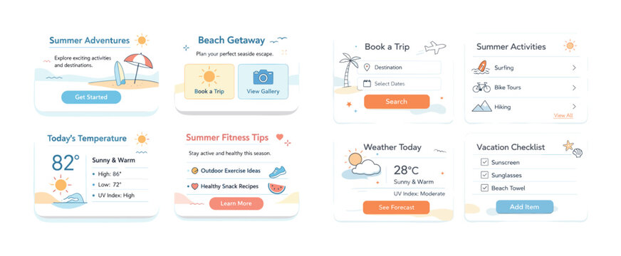 Travel and vacation editable line icons set. adventure and leisure symbols