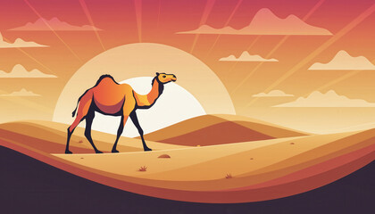 Camel Walking in Desert Landscape Illustration.