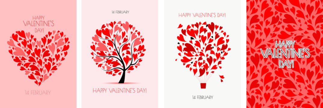 Valentine's day card design. Love Tree, Air Balloon, Heart shape. Wedding set. Wallpaper, flyers, invitation, posters, brochure, voucher,banners.