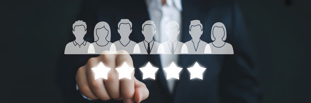 Customer Feedback and Ratings: A visual representation of consumer feedback is shown here, with a hand interacting with a rating system to communicate product or service experiences.