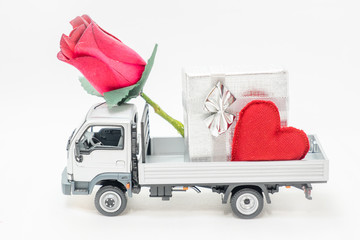 van carrying the heart and the love of Valentine's Day