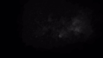 Cartoon white smoke transition filling the black screen. Stock video with billowing steam in 4K with an alpha channel for scene changes.