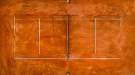 Un terrain de tennis en terre battue vue du ciel en drone.