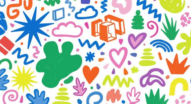 多彩な手描きドゥードゥルの抽象パターン|エネルギッシュで表現力豊かなクリエイティブ背景