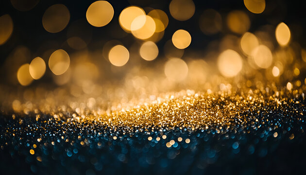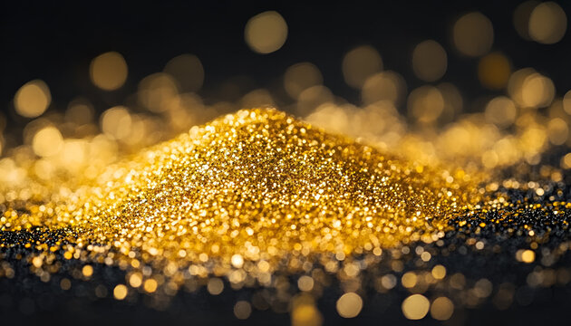 Golden glitter dust sparkles on a black background, symbolizing luxury and celebration of various festive events