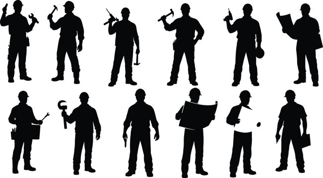 Construction tools and equipment line art icons set for building and renovation projects, showcasing essential industry symbols for various trades