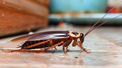 Disgusting american cockroach crawling on the floor  a common household pest encounter