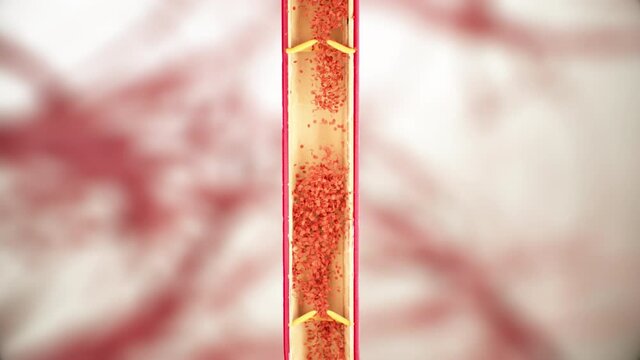 Leg vein anatomy, venous valve function, blood flow, erythrocytes, human anatomy, 3D animation