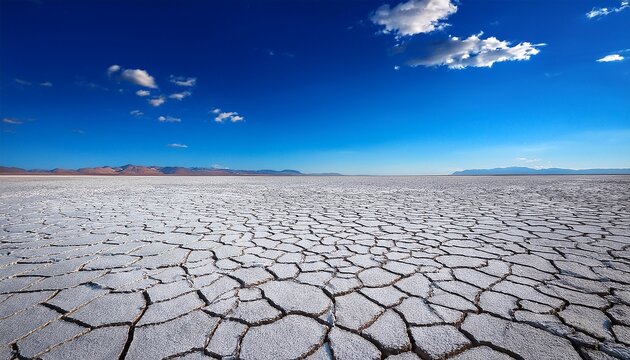 A vast desert landscape showcasing rugged mountains against a brilliant blue sky with scattered clouds, highlighting the beauty of arid environments and natural vistas.