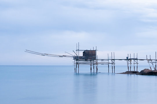 Italian typical fisherman trabocco in Punta Aderci Vasto