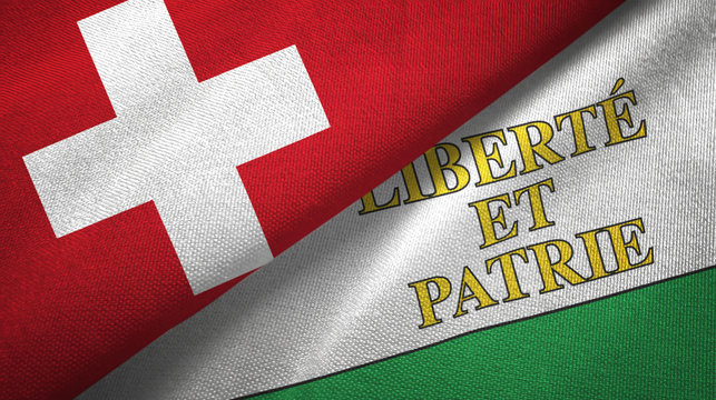 Switzerland and Vaud canton two flags textile cloth, fabric texture