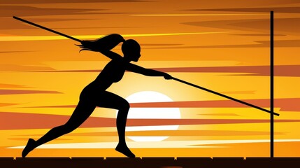 Silhouette of a pole vaulter competing. Athletics championship. Vector illustration.