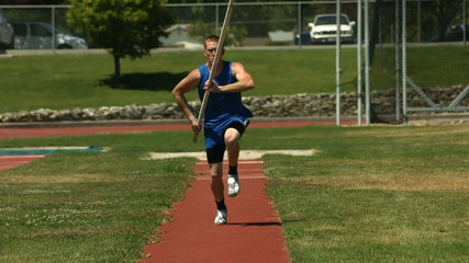 pole vaulting - the athlete is configuring to jump and starting to run