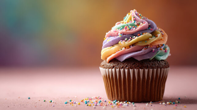 vegan cupcake with colorful frosting and sprinkles