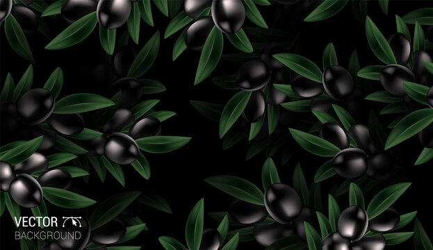Natural Realistic pattern background with olive and leaves vector design Colorful dark background. Trendy repeat texture print wallpaper. Nature concept