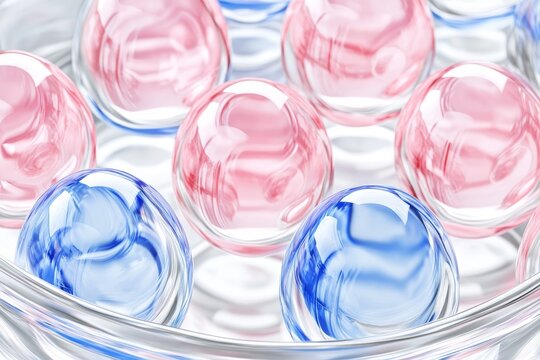 Abstract AI illustration of piles of various oval shapes and microorganism substances scattered over shiny surfaces