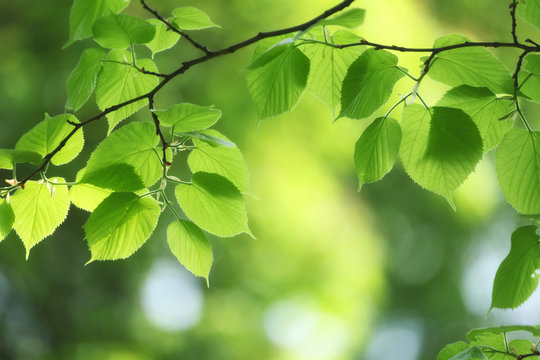 Serene Green Branch: A close-up shot of a fresh green branch with vibrant leaves, radiating a sense of nature's delicate beauty and serene tranquility.