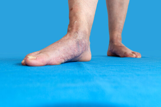 Várices en pies de mujer mayor de 60 años. Arañitas vasculares. Insuficiencia venosa. Tratamiento.