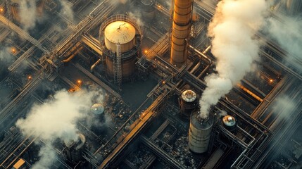 Factory processing waste materials with extensive piping and large exhaust vents