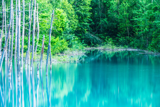 Blue pond, Japan,Hokkaido,Kamikawa-gun,Biei, Hokkaido