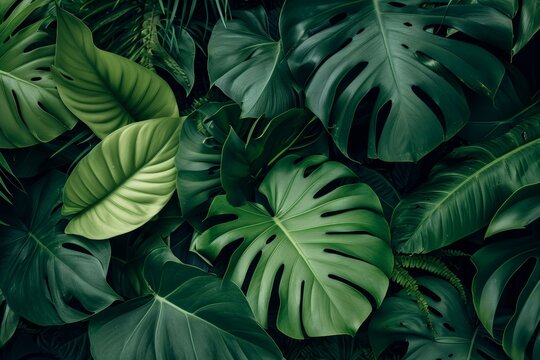 Exploring The Collective Background Of Lush, Dark Green Tropical Leaves