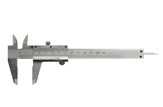metal vernier caliper, construction and working measuring tool, isolated on a white background