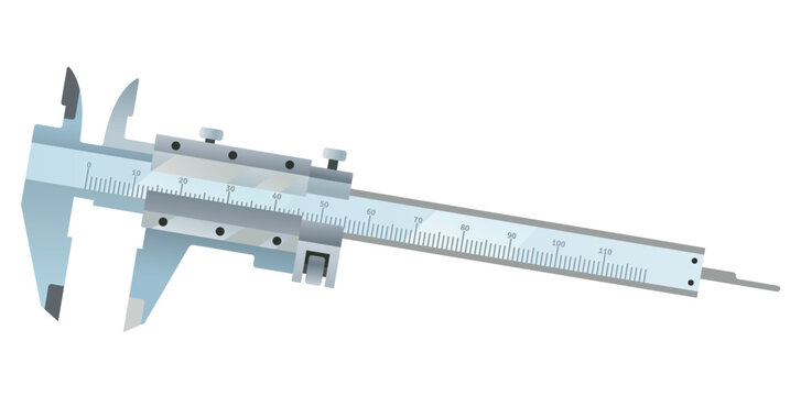 Realistic Vernier Caliper Physics Teaching Experiment Measuring Tool Vector Illustration.