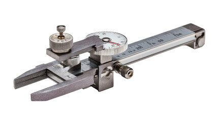 Precision vernier caliper with fine adjustment wheel background isolated on a Transparent background, PNG file.