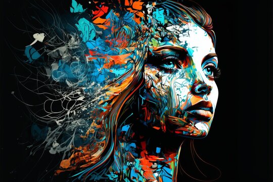Virtual Versatility, Showcase the versatility of digital expression with an abstract face that seamlessly integrates various digital elements, AI