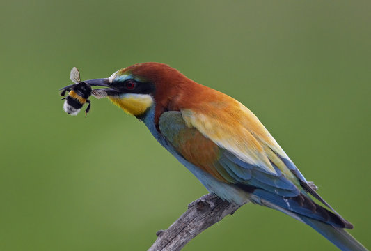European Bee-eater (Merops apiaster) feeding on bumblebee, Pusztaszer, Hungary, May 2008