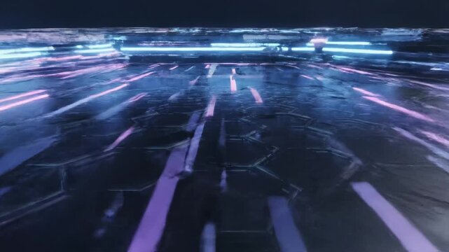 Futuristic hexagonal platform with neon lights