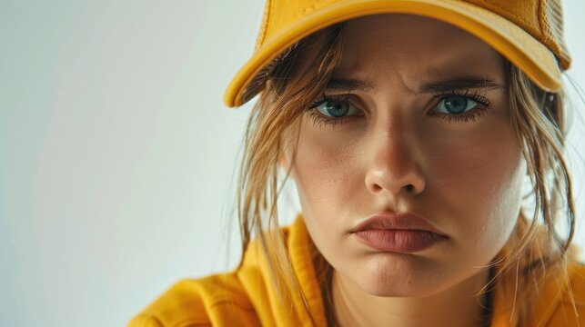 Disappointment: This picture shows a charming little girl who loves football but is upset because her team didn't win. captured on a solitary white backdrop.