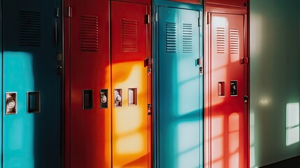 Detailed image of organized school lockers in a bright, well-lit hallway, perfect for showcasing an educational and academic setting.