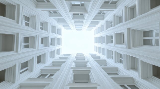 A captivating perspective of a towering building viewed from the ground, emphasizing its architectural grandeur and verticality against the sky.
