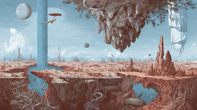 visual essay on symbolic mindscapes | spiritual distortion | lucid paranoia | burnt sienna and cyan | symbolic verticality | levitating objects | precision surreal anatomy | microscopic detailing |