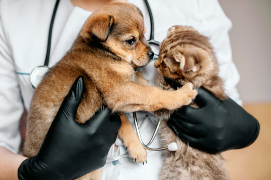 vet dog cat puppy kitten doctor veterinary pet clinic care animal medicals health hospital medicine stethoscope examining sick exam professional cute happy young domestic nurse cocker spaniel
