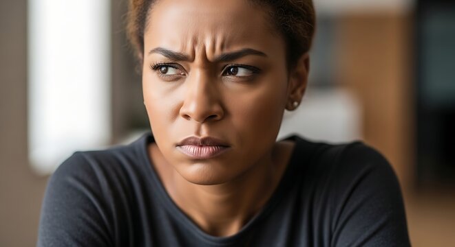 Frustrated Woman Frowning Deeply with Intense Expression.