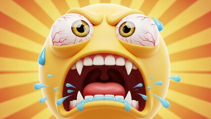 Intense Yellow Emoji Screaming with Exaggerated Features and Striking Background