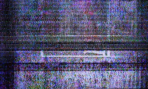 The grainy texture of a TV or computer screen, reminiscent of the aesthetic of old VHS movies.