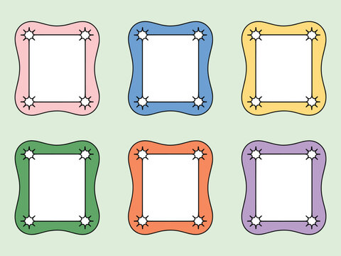Colorful Square Frames with Wavy Borders and Star Corners – Pink, Blue, Yellow, Green, Orange, Purple – Blank Center for Notes, Labels, Journaling, Scrapbooking, Classroom Decor