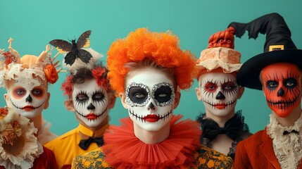 Guests dressed in ornate imaginative costumes attend an elaborate Halloween party captured in a vibrant cinematic style with high visual clarity evoking the influence of the Baroque era