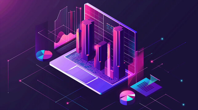 Colorful 3D bar graph on a vibrant pink background illustrating growth, data analysis, business metrics, and market trends. 3D Illustration.