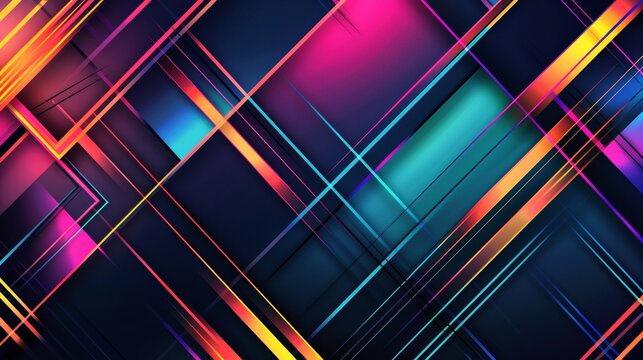Abstract geometric background featuring crossing diagonal stripes in a variety of colors, creating a sense of depth and movement