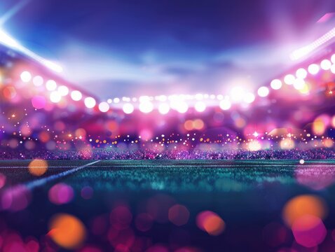 Blurred bokeh effect. vibrant sports stadium with cheering fans and illuminated lights