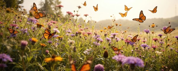 An image of vibrant flowers and delicate butterflies in close proximity with ample copy space for text or additional visual elements