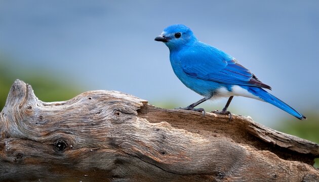 vibrant blue bird perched on driftwood